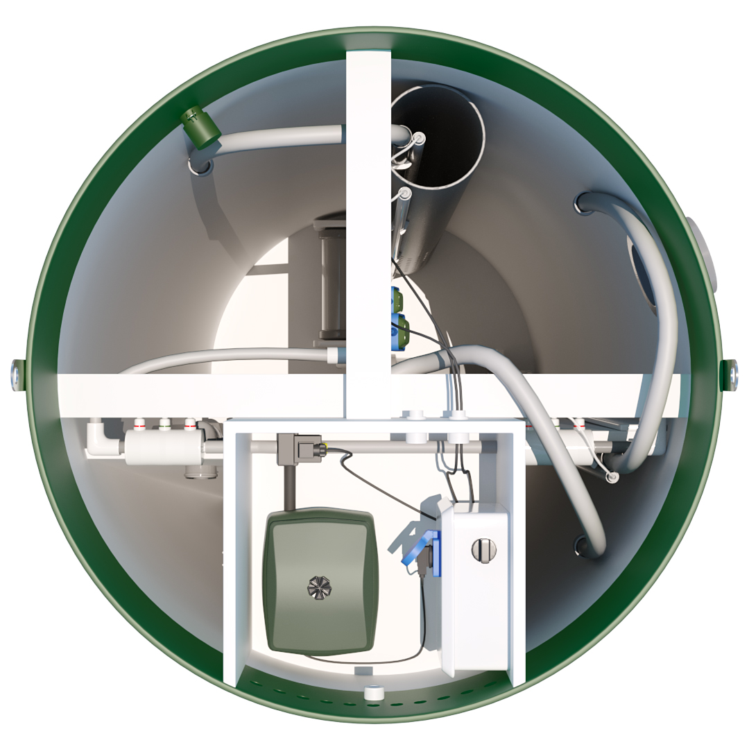 Четвёртая секция необходима для накопления ила. В эту камеру направляется избыточный активный ил. Эрлифт с заданными периодами удаляет активный ил. По тем или иным причинам, не всегда присутствует возможность самотечного вывода из станции автономной канализации очищенной воды. В основном по причине глинистых грунтов и высокого уровня грунтовых вод. Поэтому завод производитель септиков предусмотрел дополнительную установку отдельной камеры в первый отсек с целью размещения в нём насоса принудительного вывода очищенных стоков.